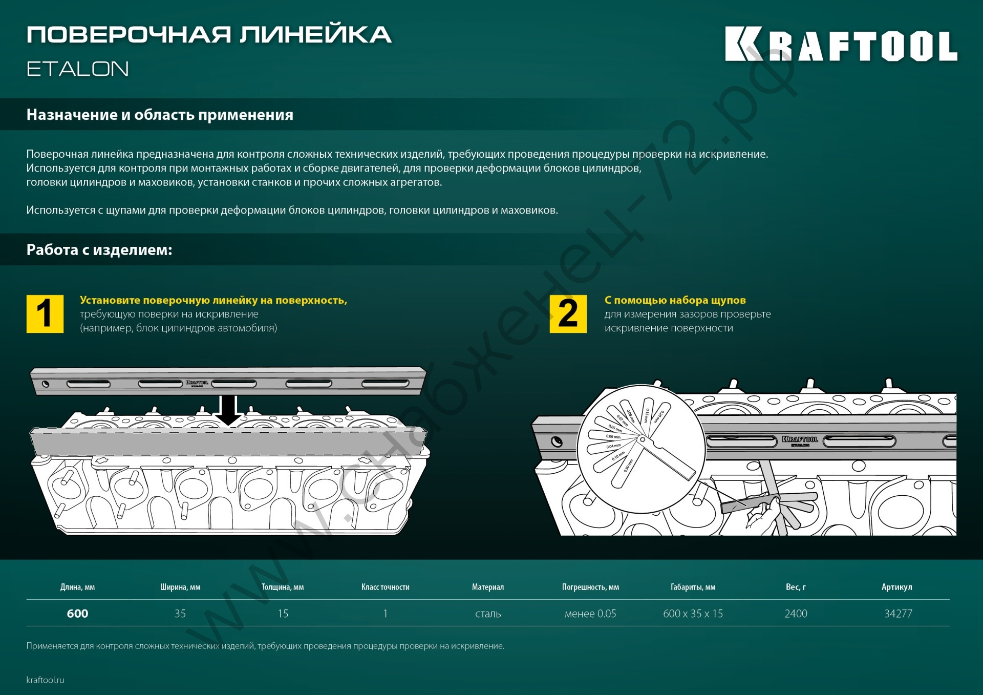 Идеальна для оценка искривлений блока двигателя, маховика или головки блока цилиндров, а так же может быть использована, как эталонный прямоугольник